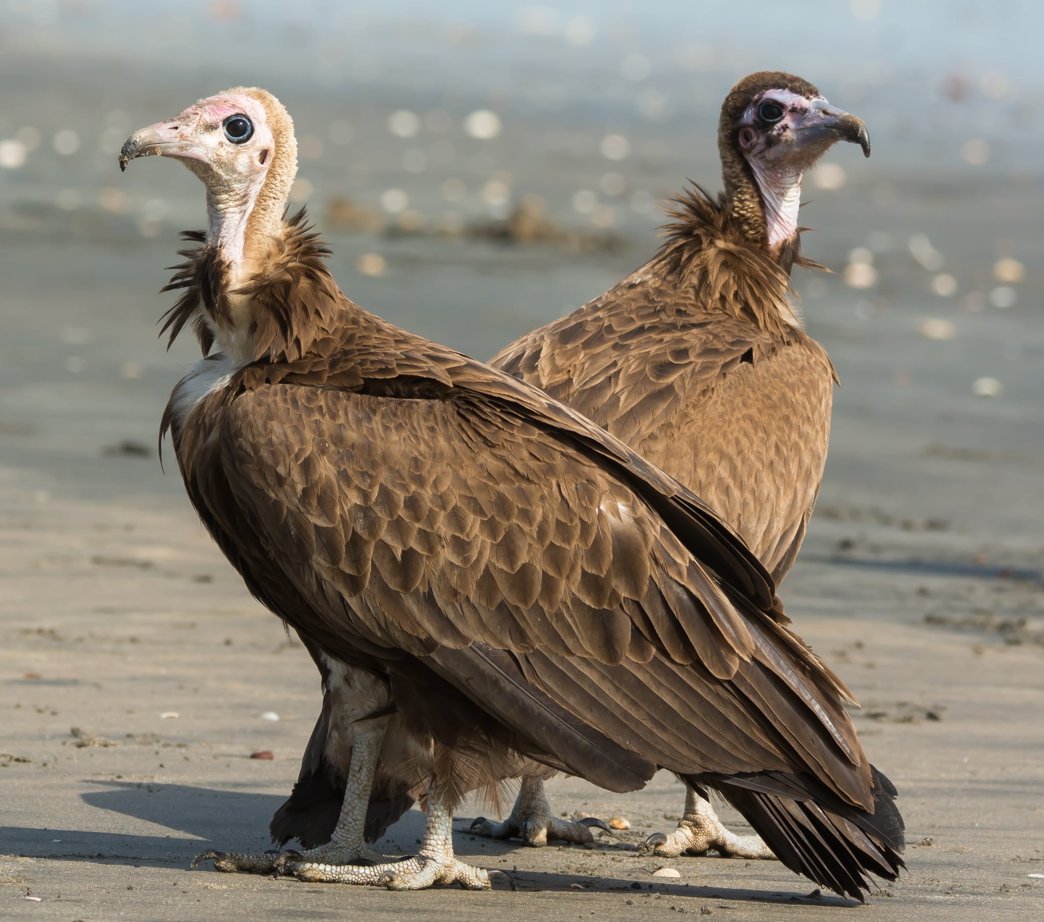 - Appearance: Bald heads/necks, large wingspans, hooked beaks.